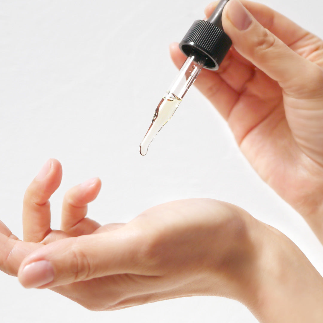 A.お肌や唇のケア、髪や乾燥による傷のケアには1〜2滴、ひじ・ひざ・かかとや全身の乾燥ケアには3〜5滴が目安です。お肌の状態を見ながら量を調節してください。