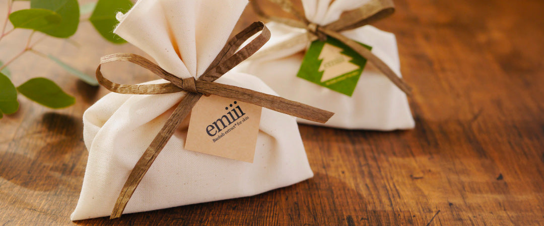 人生の節目のおめでとうの気持ち、日々のちょっとした感謝の気持ち、大切な人へ想いを込めて贈るプレゼント。特別な想いをやさしさと共にお包みする、emiiiのサステナブルなギフトラッピング。